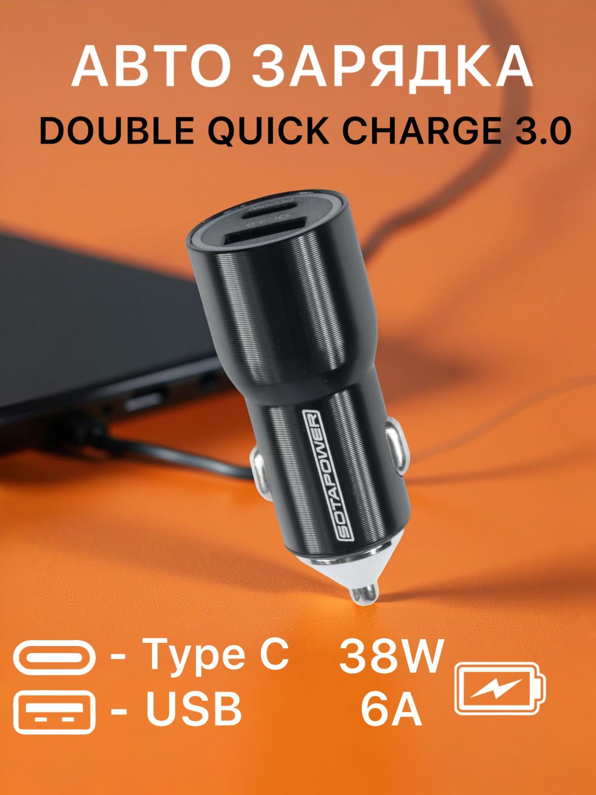 #быстрая #автомобильная #двойная #надежная #качественная #гарантия #SOTAPOWER #зарядка_для_телефона_usb #с_блоком #l_208 #зарядка_двойная_для_телефона #зарядка_type_c #зарядка_в_прикуриватель